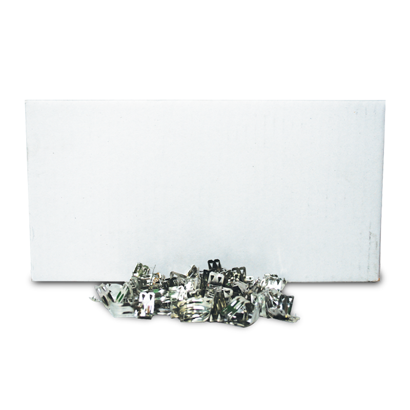Kahekordsed metallist seelikuklambrid seeliku riidepuule kinnitamiseks. 2500 klambrit karbis.