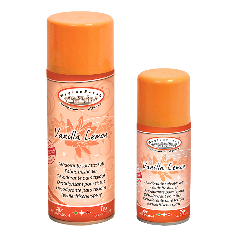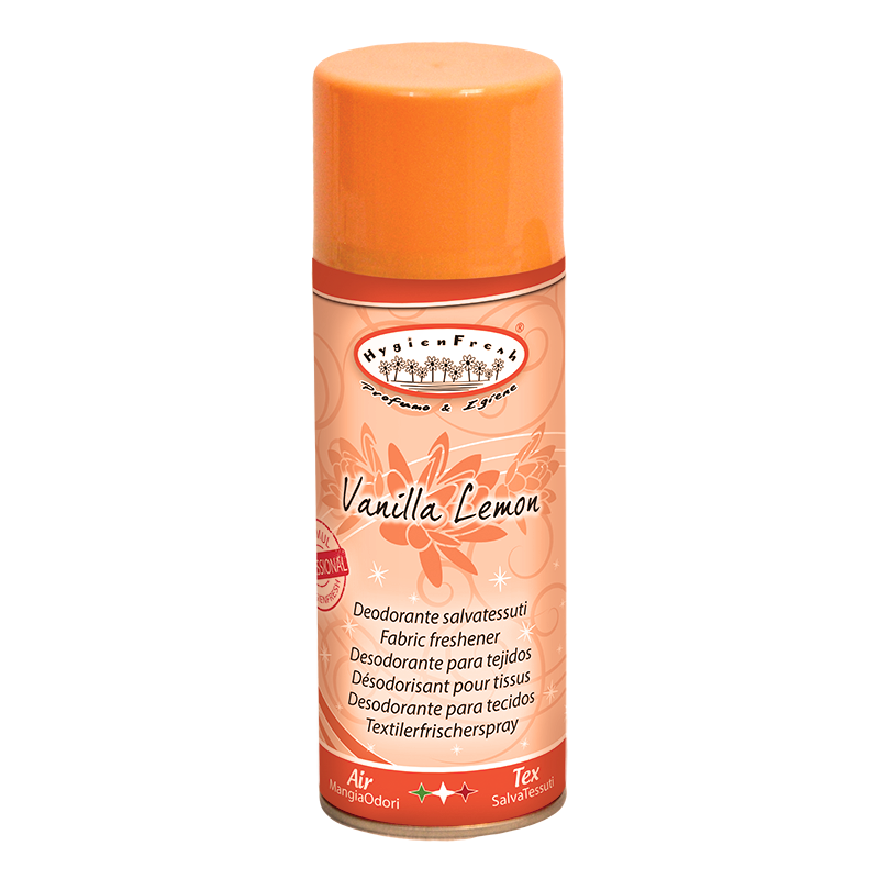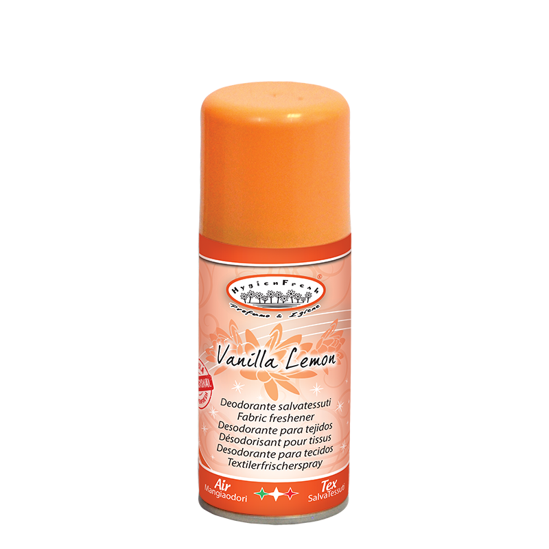 Lõhnaeemaldussprei, millel on spetsiaalne lõhna eemaldav koostis, vanilje & sidruni lõhnaga.